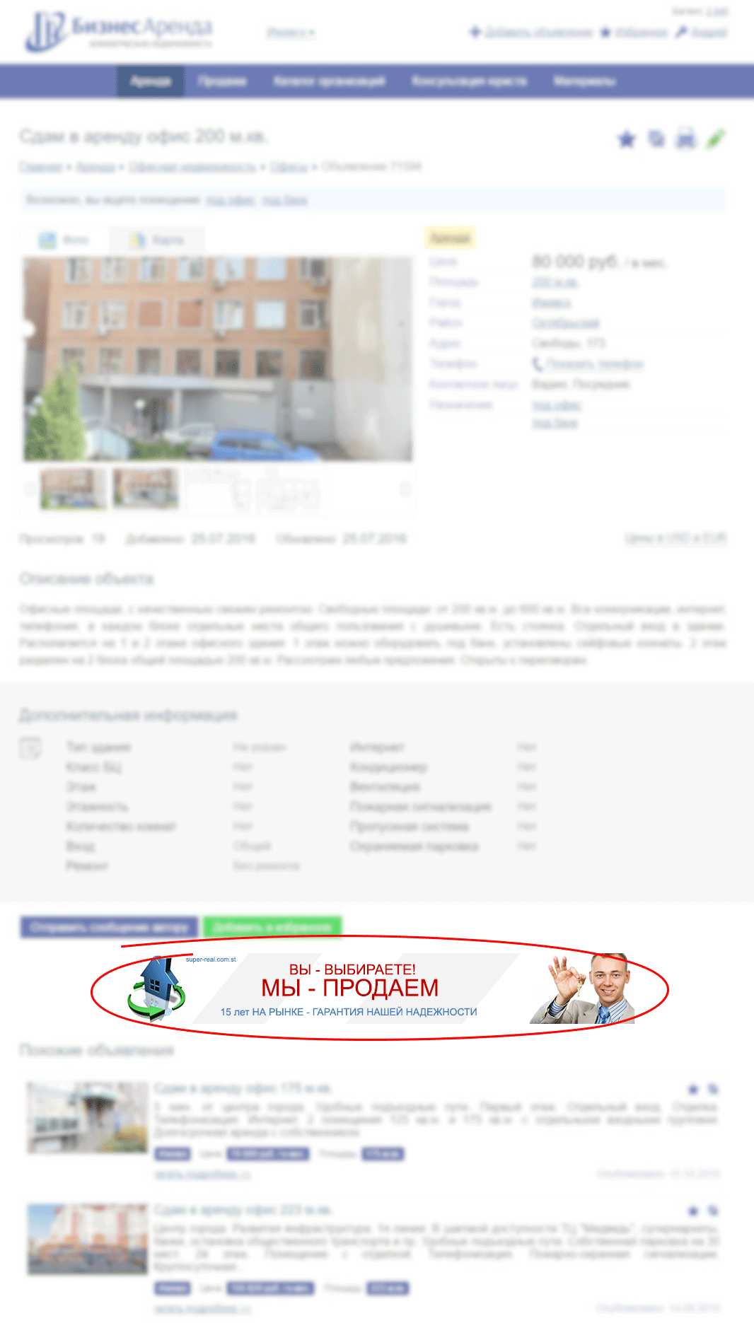 Медийная реклама "Баннер в объявлении" (горизонтальный баннер на странице объявления)