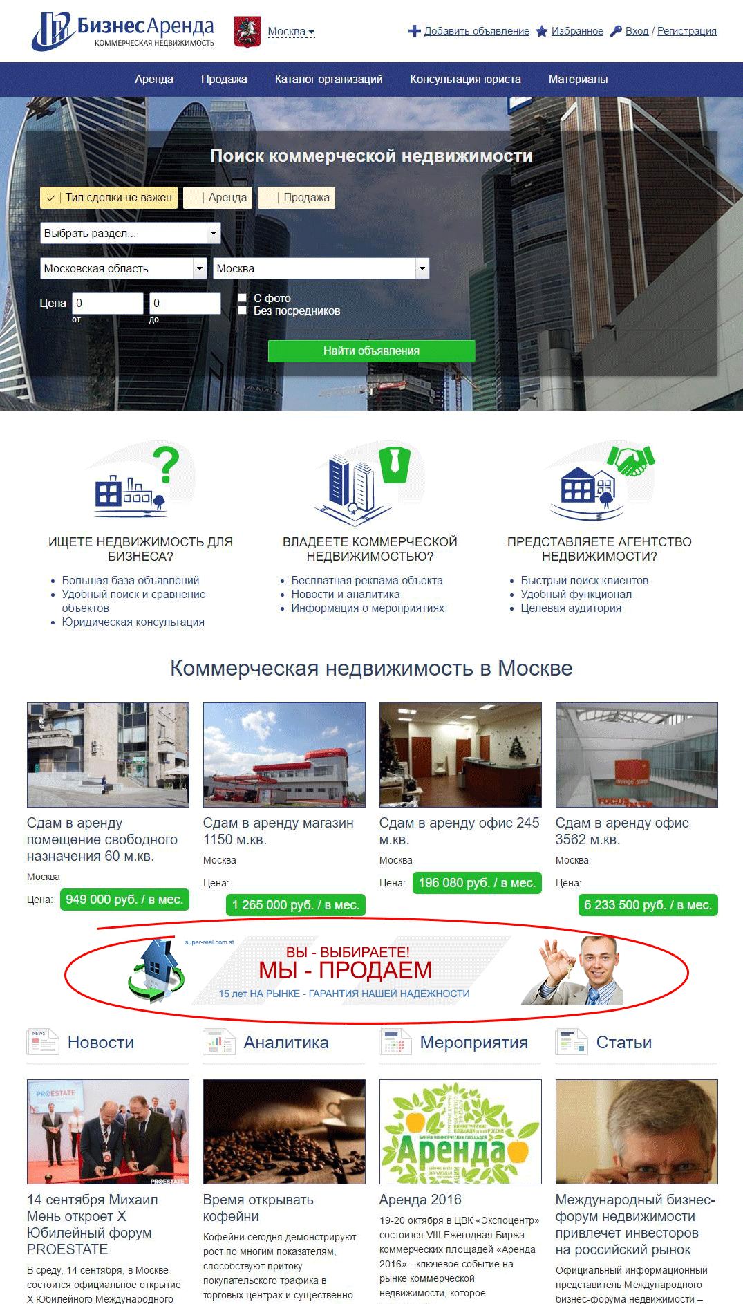 Реклама на сайте БизнесАренда